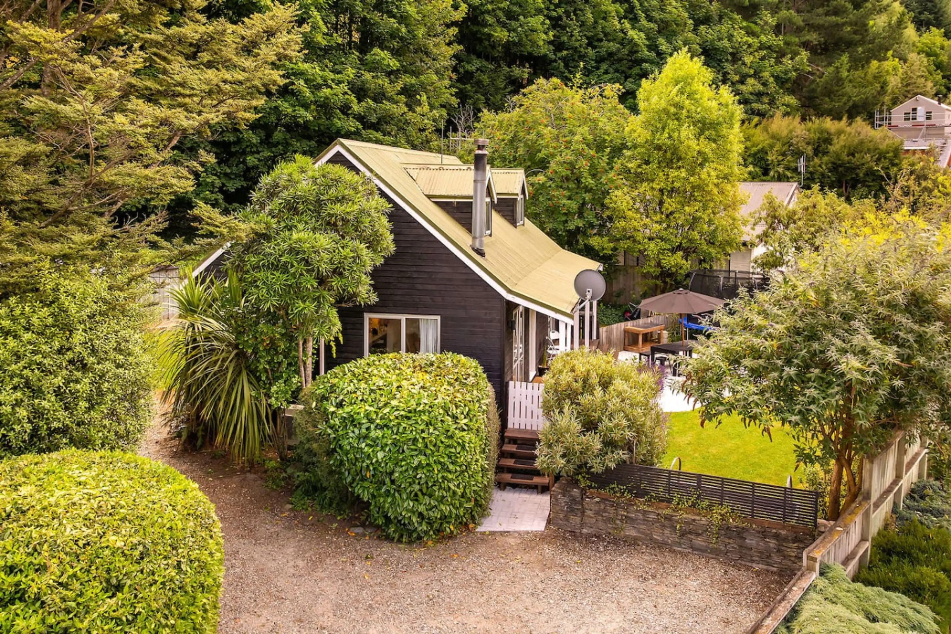 Tucked away at the foot of the hills, just a 3-min drive or 20-min walk to Queenstown CBD. This charming cottage features a stylish interior, cosy wood burner, heat pump, and a gorgeous garden with mountain views. Perfect for families — garden includes a trampoline, playground & BBQ. Soak in the b...